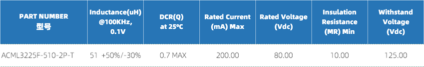 Therefore, in the series of chip-type common mode inductors that support CAN FD, in addition to the existing 100μH variant, we have also introduced a new variant, the "ACML3225F-510-2P-T" with a value of 51μH. This product effectively reduces the radiated noise of internal automotive network signal lines such as CAN/CAN-FD.