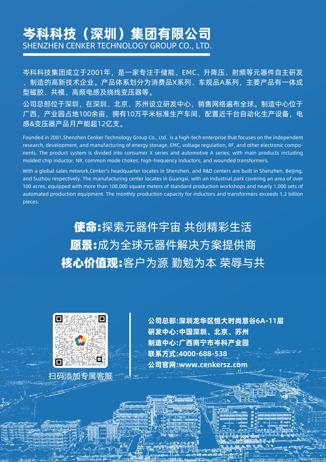 岑科實業一家專注于儲能、EMC、升/降壓、射頻等元器件自主研發、制造的高新技術企業。